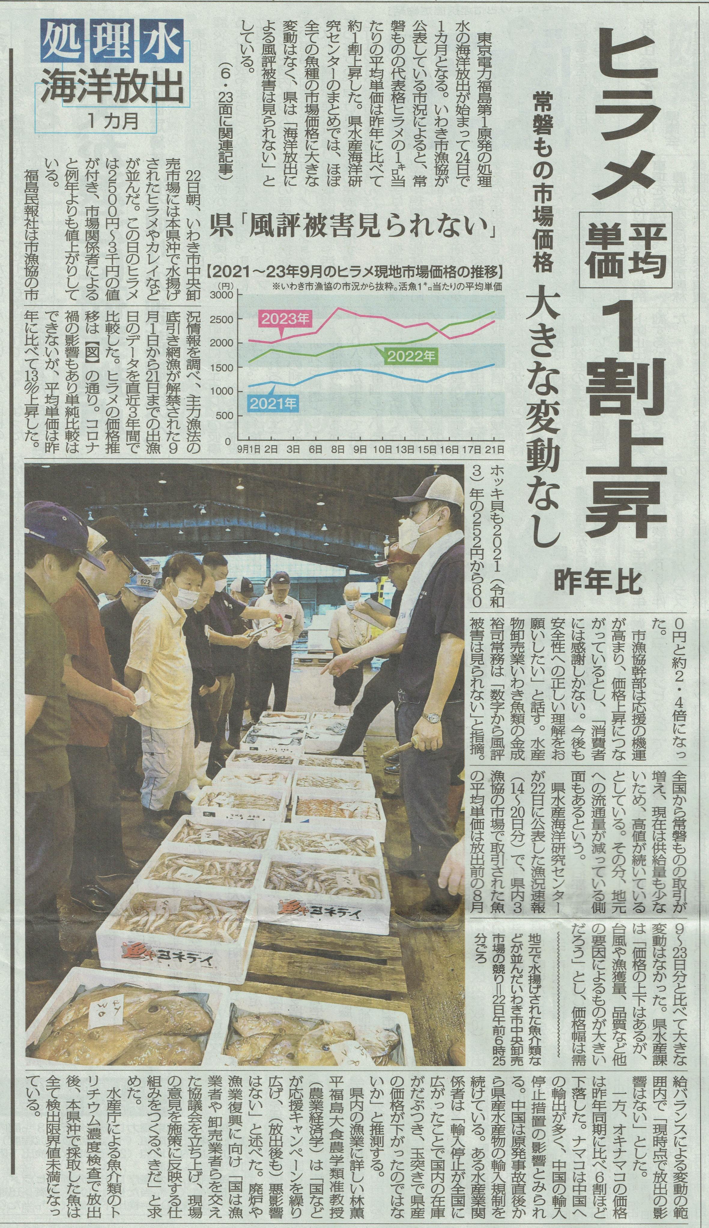 ② 常磐もの市場価格 大きな変動なし(福島民報 2023年09月23日掲載)