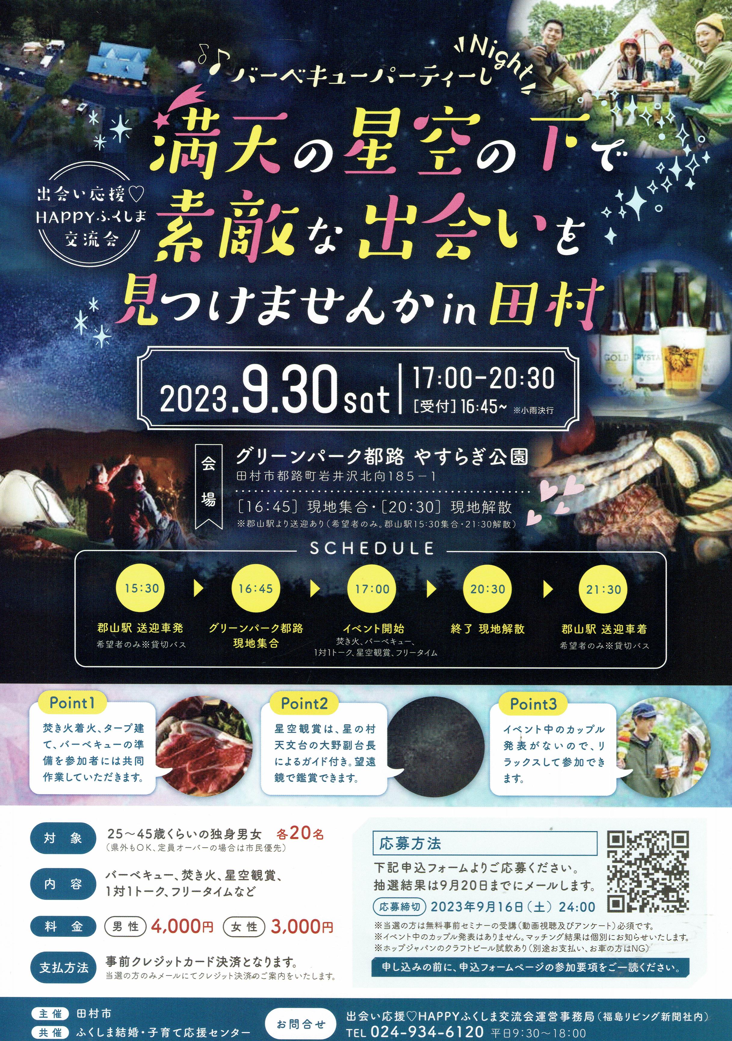 満点の星空の下で素敵な出会いを見つけませんか in 田村