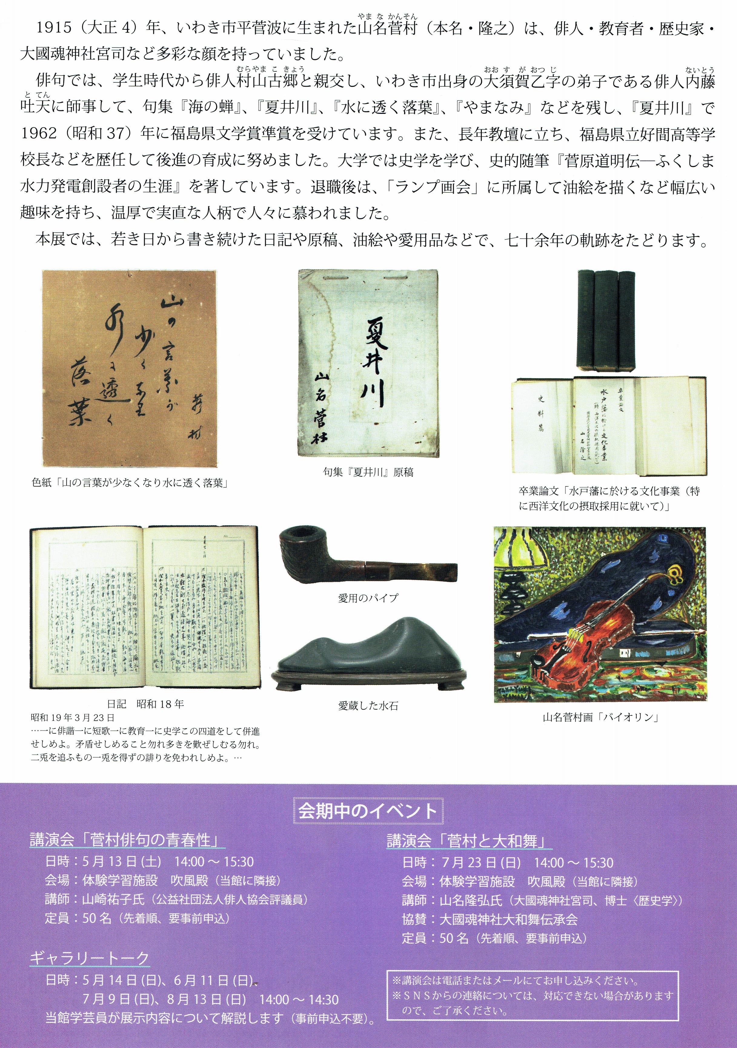 ① 山名菅村・企画展(4/22~8/27、いわき市勿来関文学歴史館)