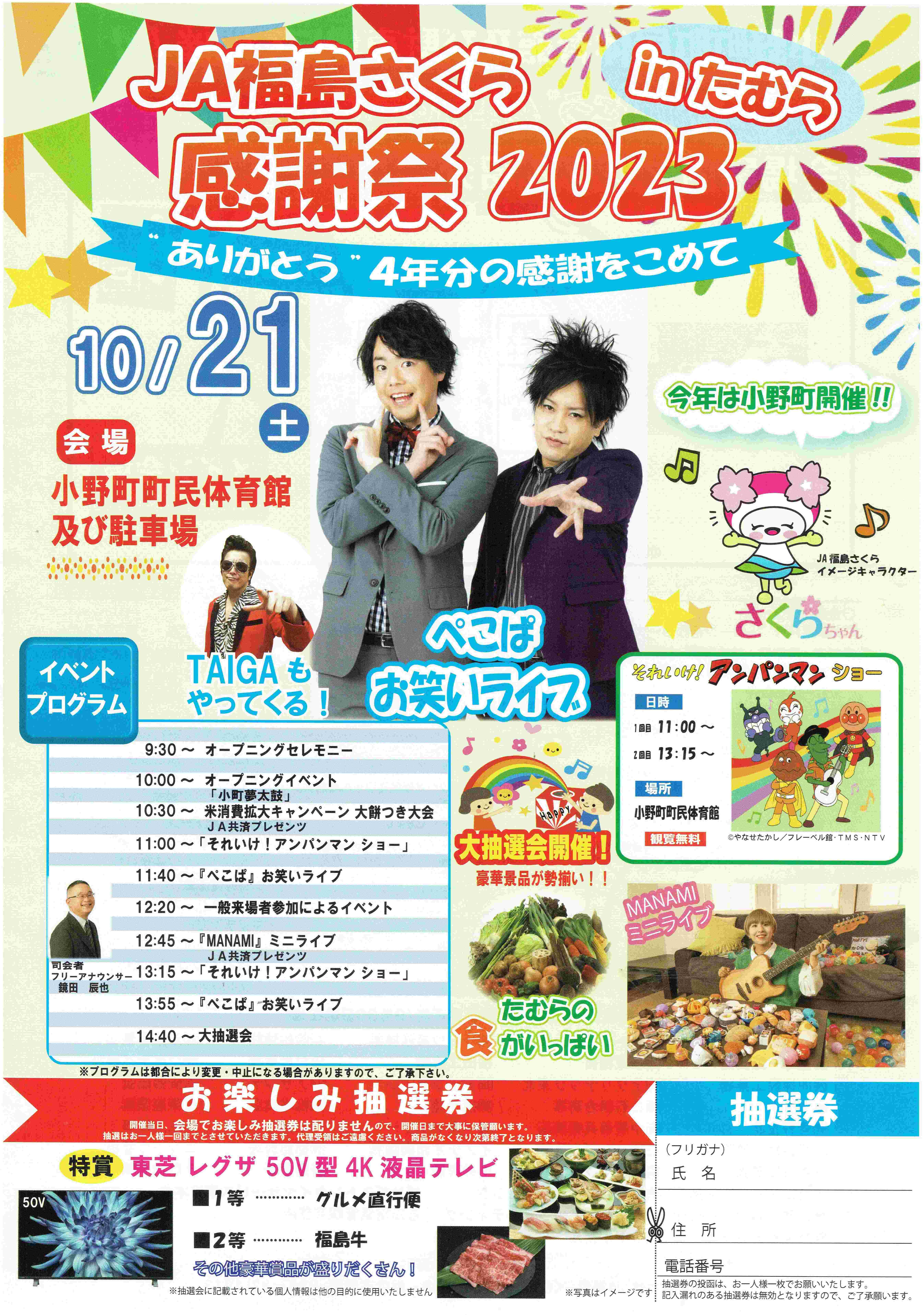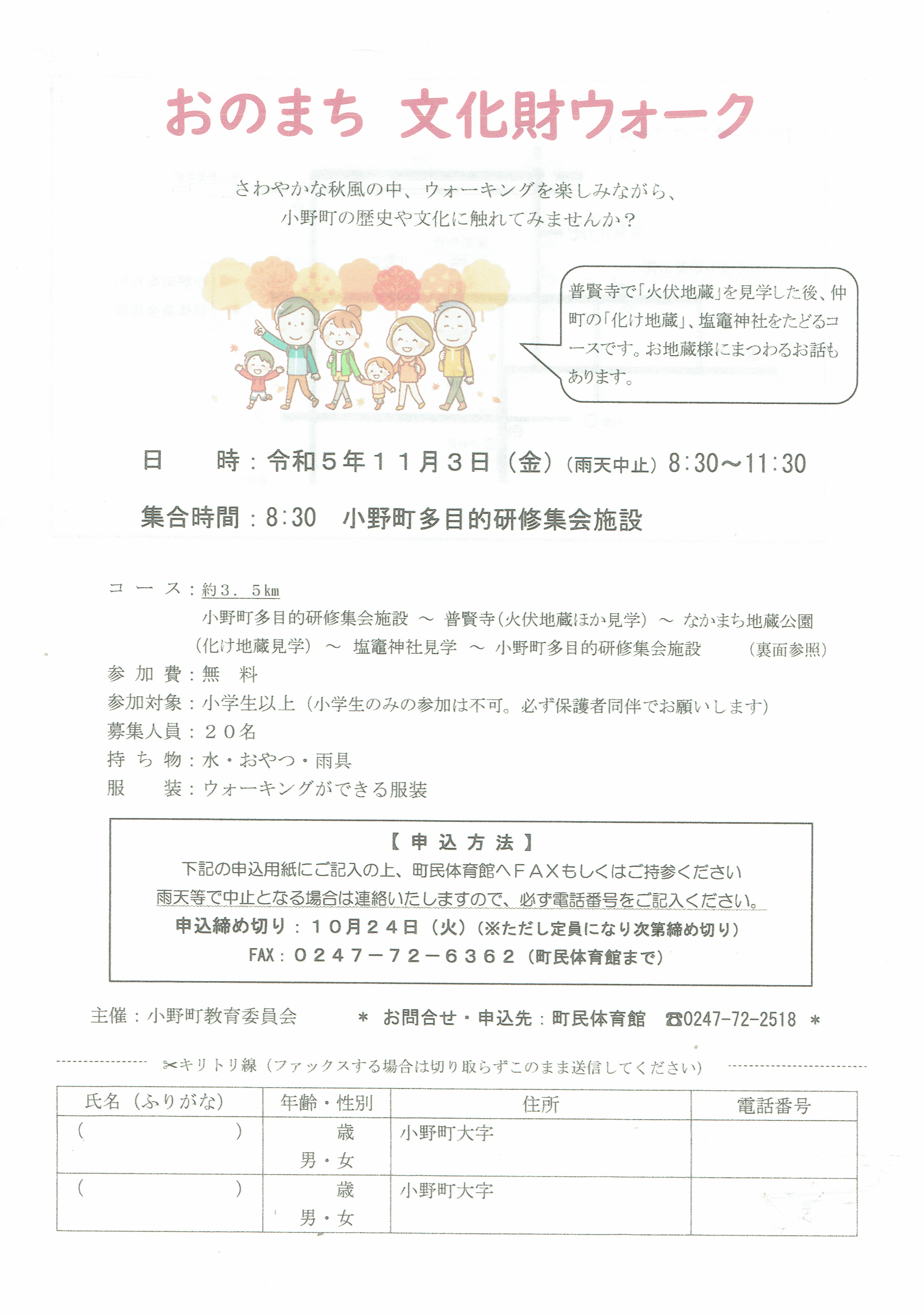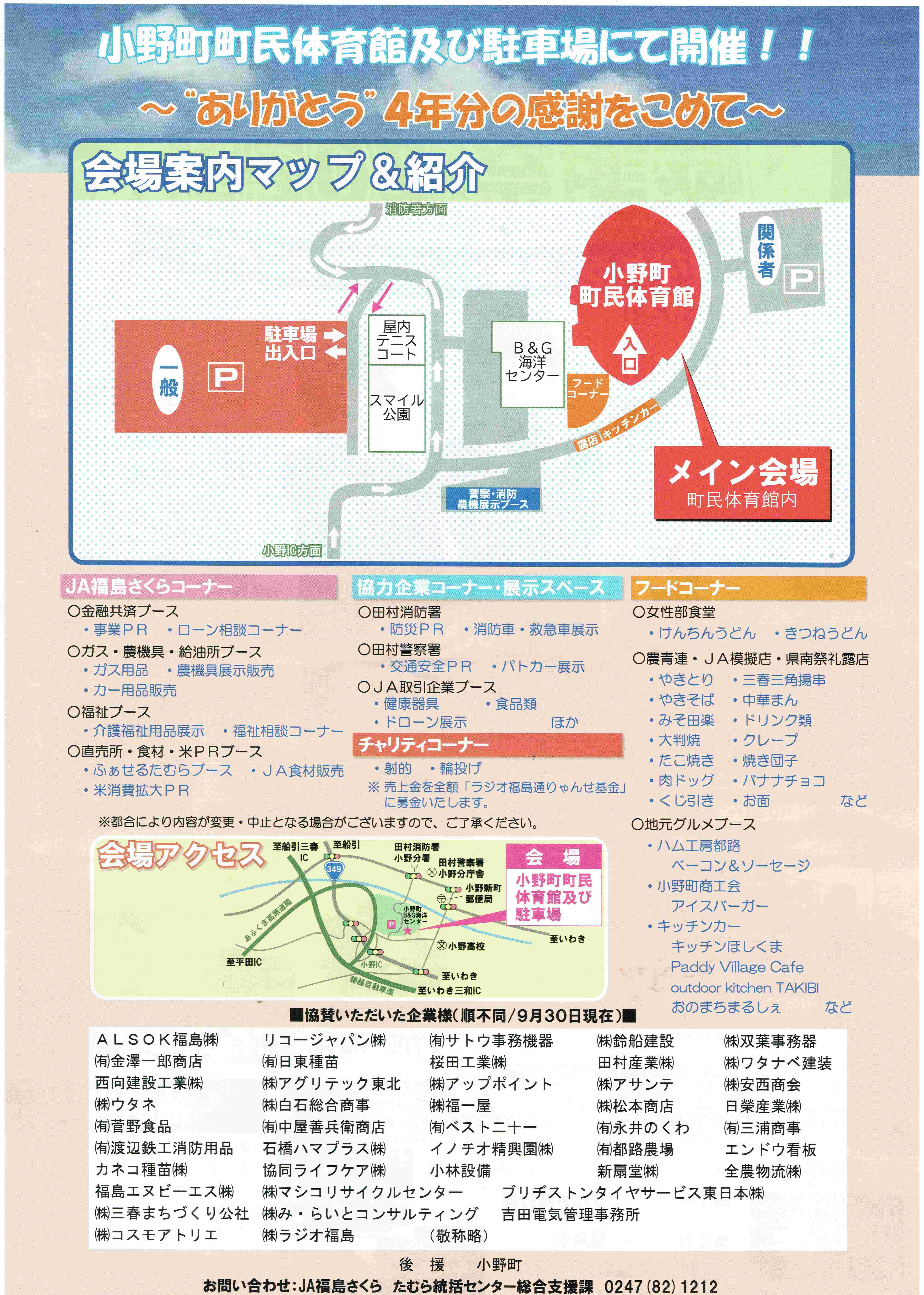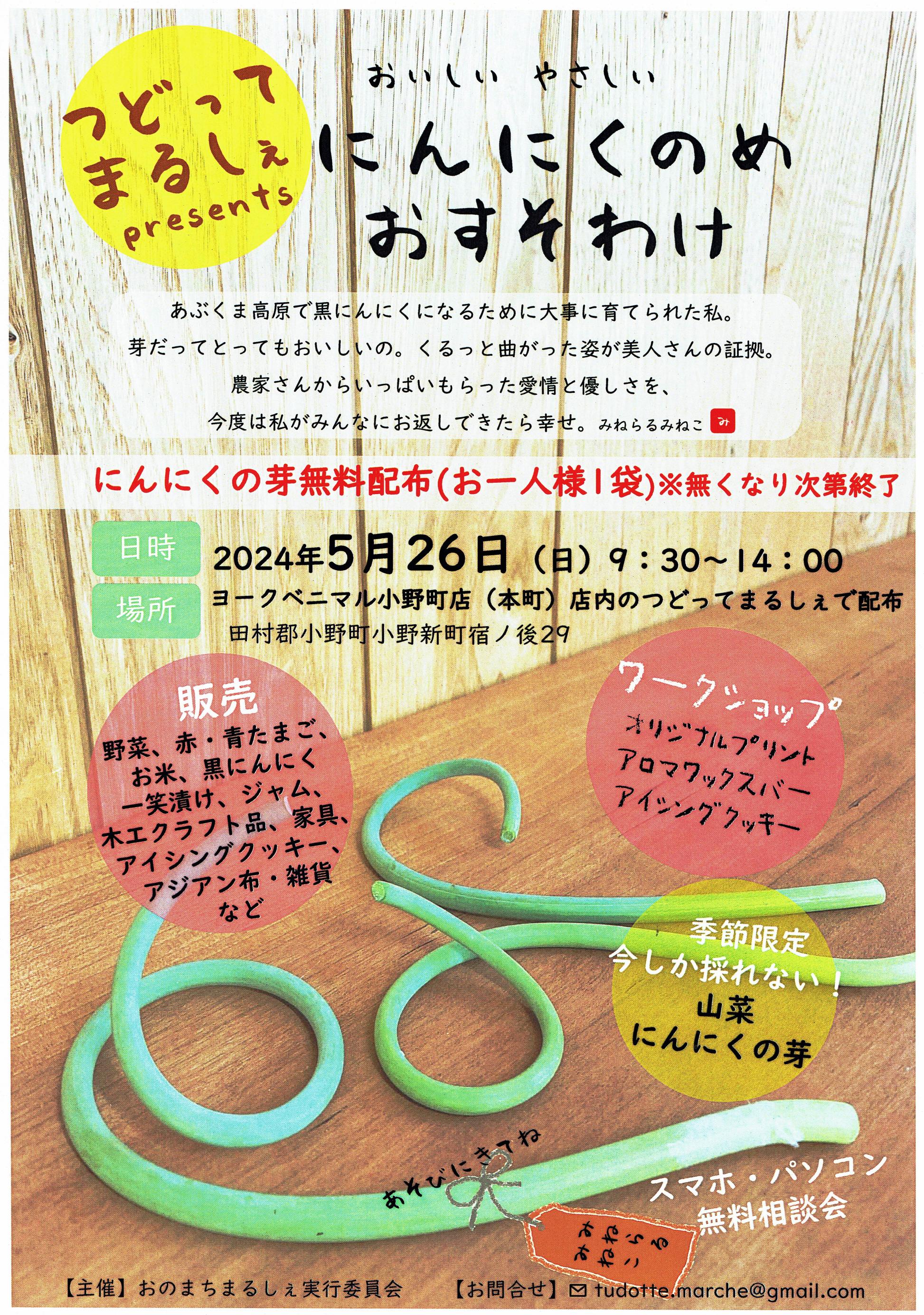 | 今日(2024/07/14 AM)の小野町 | | 中学校野球大会(民報杯、小野運動公園内) 船引中 VS 小原田中 | | | | | | 中学校卓球大会(小野運動公園内) | | | ビーチバレー 第17回こまち大会(小野運動公園内) | | | COMCOM創業祭(COMCOM駐車場内) | | | | | | 八雲神社・きゅうり天王祭(大字谷津作) | | | | | (トップページに戻る) 公立小野町地方綜合病院・院内ギャラリー(4/1~6/E) (出典:福島民報 2024年(令和6年)4月2日・11面掲載) 公立小野町地方綜合病院・院内ギャラリー(2/1~3/E予定) (出典:福島民報 2024年(令和6年)2月9日11面掲載) ルポ 「鹽竈神社例大祭」へ 第10回 (福島県)市町村対抗 県ソフトボール大会 終了 優勝:伊達市 準優勝:国見町 ベスト8:小野町
