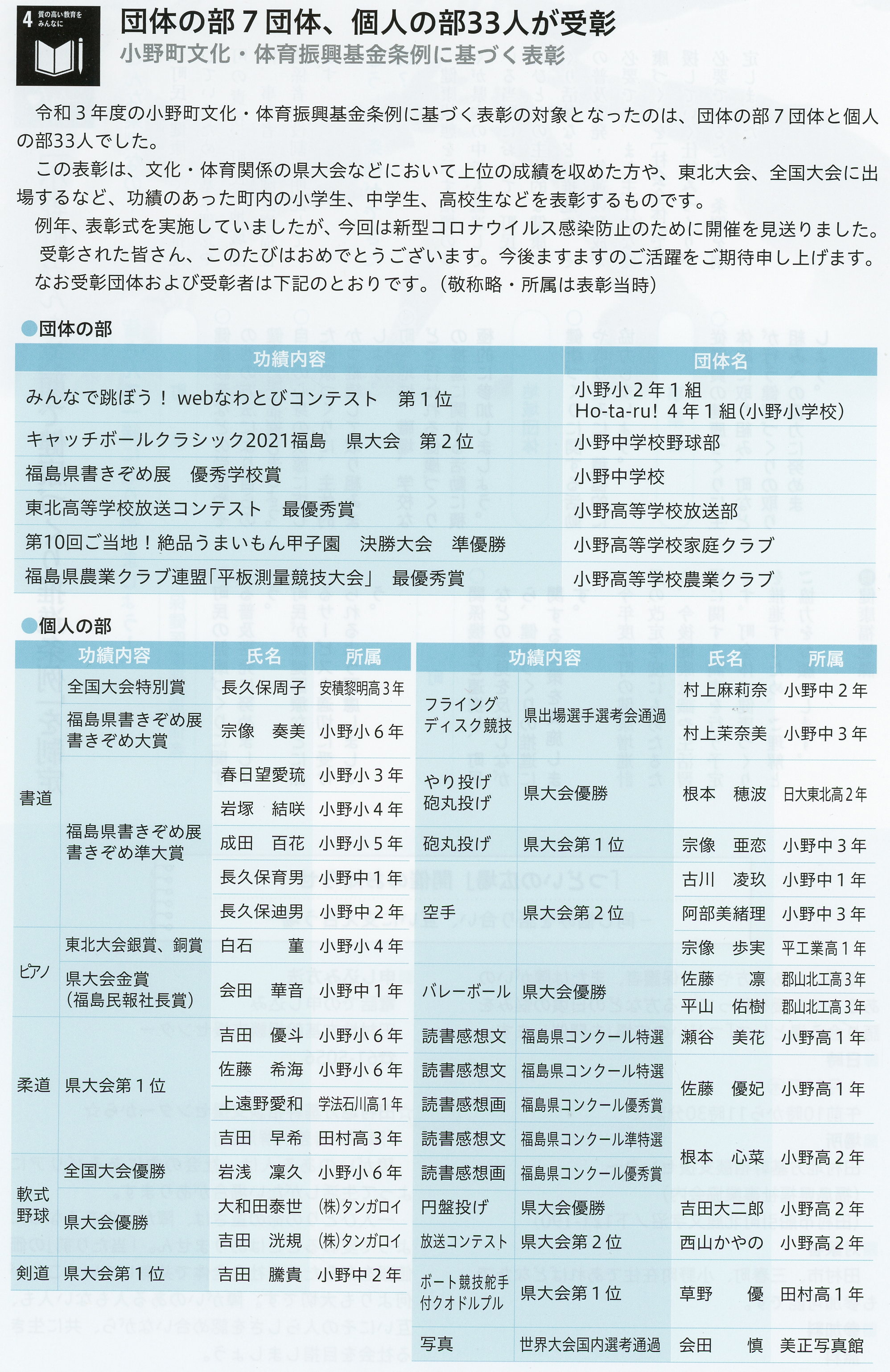 がんばる小野町民 広報 おのまち 2022年4月号 No.710 (抜粋)