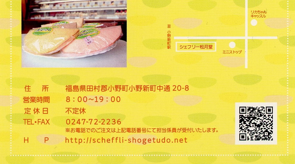 小野町のオムレット:福島県小野町『シェフリー松月堂』 小野町名物の「オムレット」です。 左側が「チョコバナナオムレット」で、右側が「フランボワーズオムレット」です。 上側が「ミニサイズ(ミニでも、大きいです!)」で、常時12種類位を店頭で販売しています。 下側が「普通サイズ」で、3日前までに予約が必要です。 小野中生もガンバッテます!福島民報 2022年(令和4年)2月19日(県南版)掲載 東堂山カレー:福島県小野町『イイトコ・飲食店/カフェ』 『イイトコ・飲食店/カフェ』は、「あまのしたワーカーズ」が運営しています。 「東堂山カレー」はカレー定食で、飲み物とデザートも付きます。これで税込み850円です。 小泉武夫「我が山河」 小泉武夫先生(小野町名誉町民第2号)が福島民報に掲載していた随筆集が発売され、2021年10月1日に「東方文化堂」に入荷しました。 また、「我が山河展」が開催されます。 | 福島民報 2021年(令和3年)9月17日掲載 | 福島民報 2021年(令和3年)9月14日掲載 |