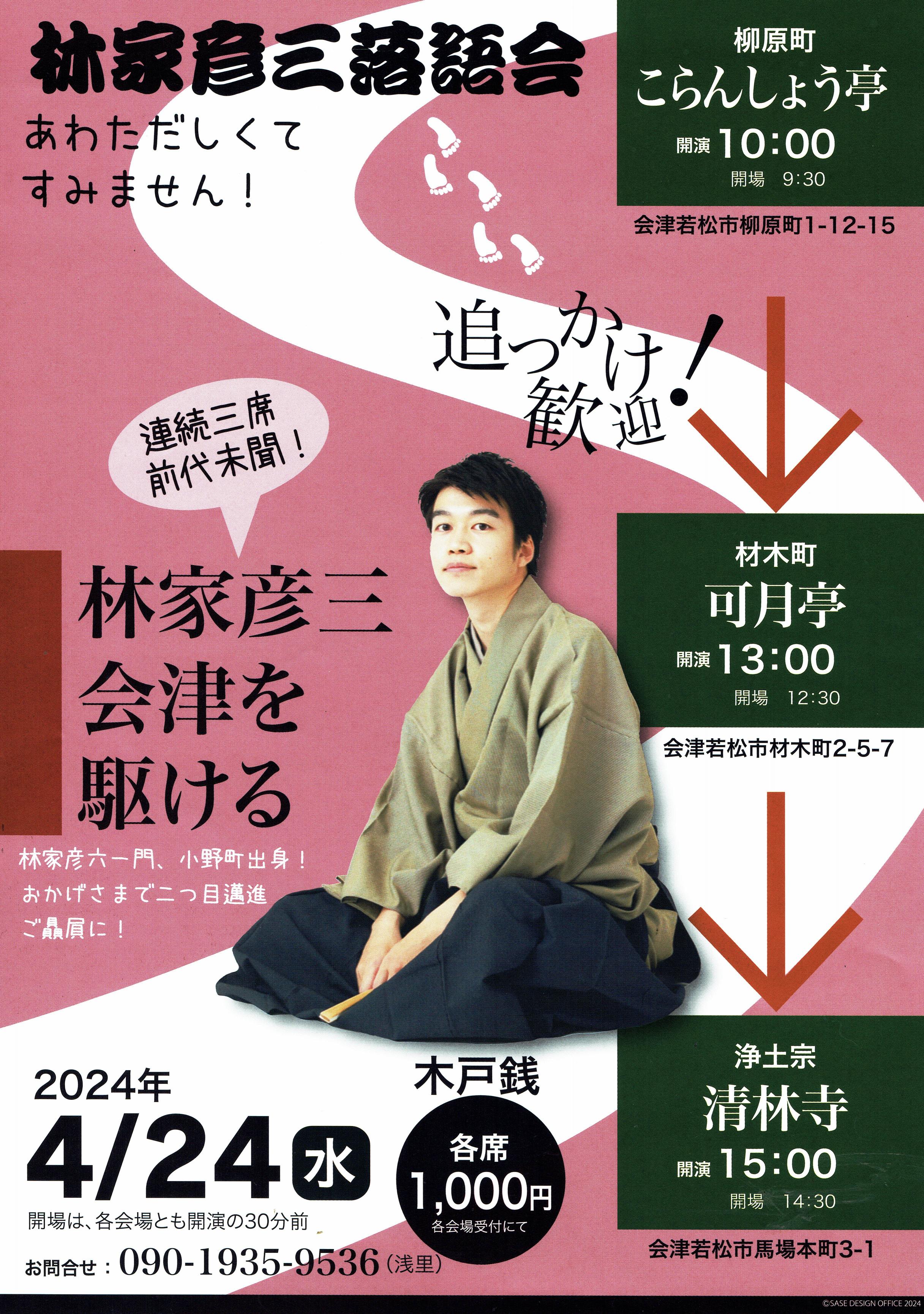 ② 林家彦三落語会(4/24、最寄り駅:会津若松駅)