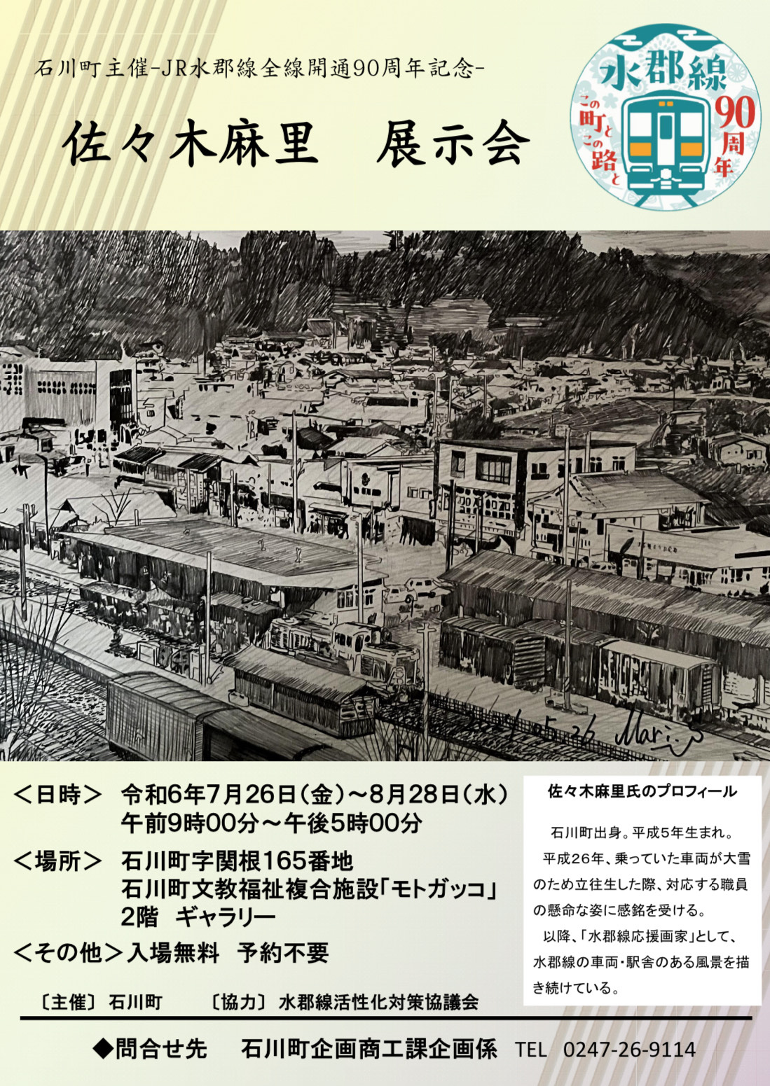 佐々木麻里展示会(7/26~8/28、最寄り駅:磐城石川駅)