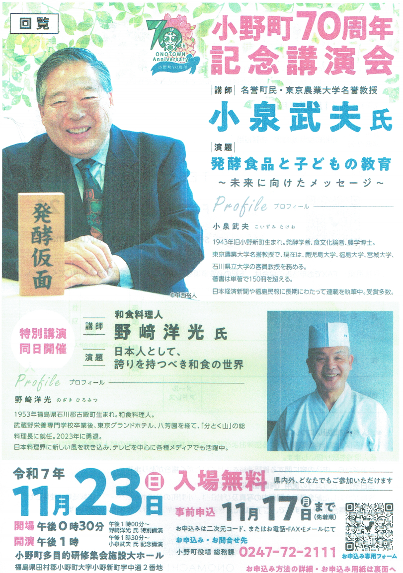 主催:小野町・小野町教育委員会(☎0247-72-2125)