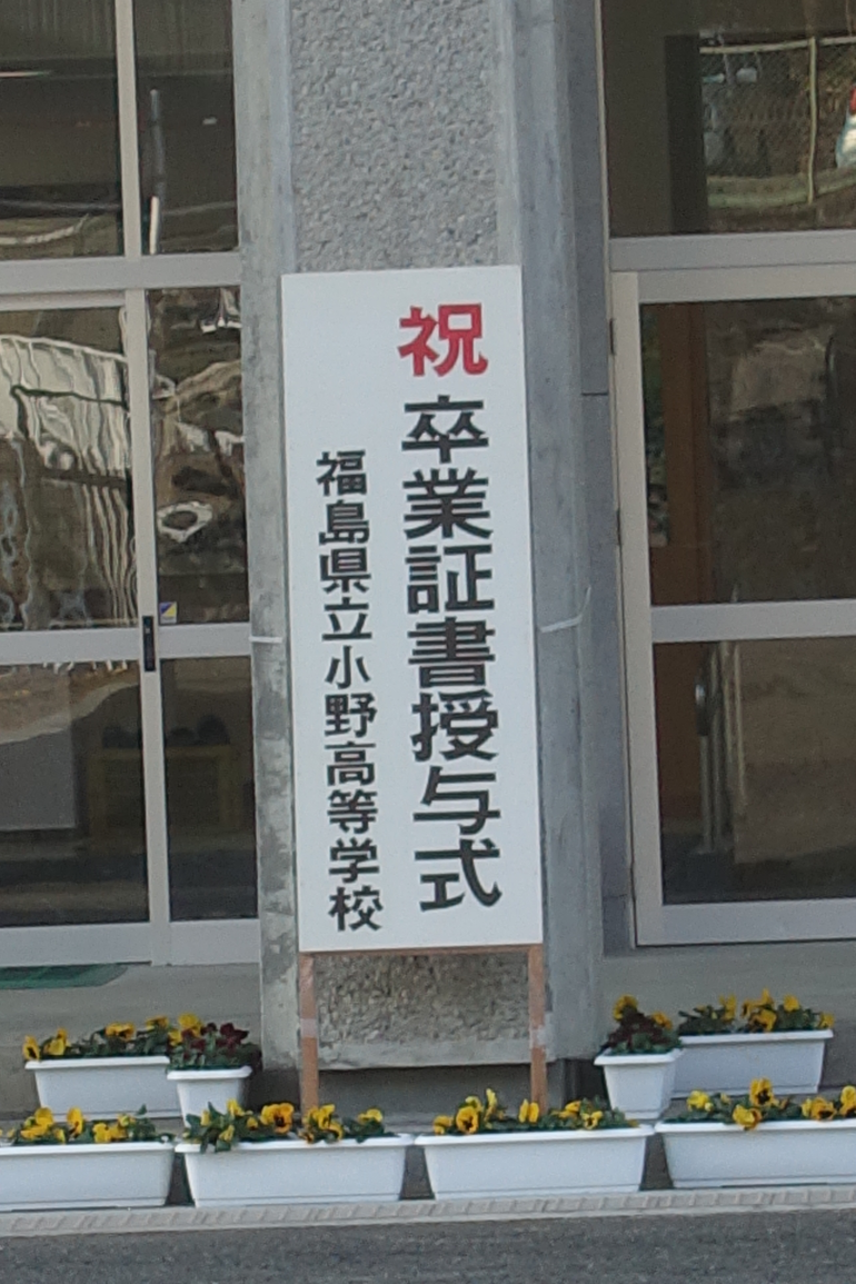 | ガンバる・小野町 2026/03/20掲載 小野高・閉校式 挙行(2026/03/19) 2026/03/20掲載小野高・最後の卒業式 挙行(2026/03/01) 2025/04/10掲載小野高・最後の入学式 挙行(2025/04/08) 2025/03/25掲載小野高・最後の入学試験終了 2025/03/03掲載船引高と小野高の統合 出典:福島民報 2025年(令和7年)1月31日(金)12面・県南版 2025/03/03掲載2025年3月1日 小野高卒業式 2025/01/23掲載 2024/03/01掲載祝・卒業 2024/03/01掲載 2024/02/17 三年生はもうじき卒業です。小野高生のガンバりをご覧ください。 2023/06/11