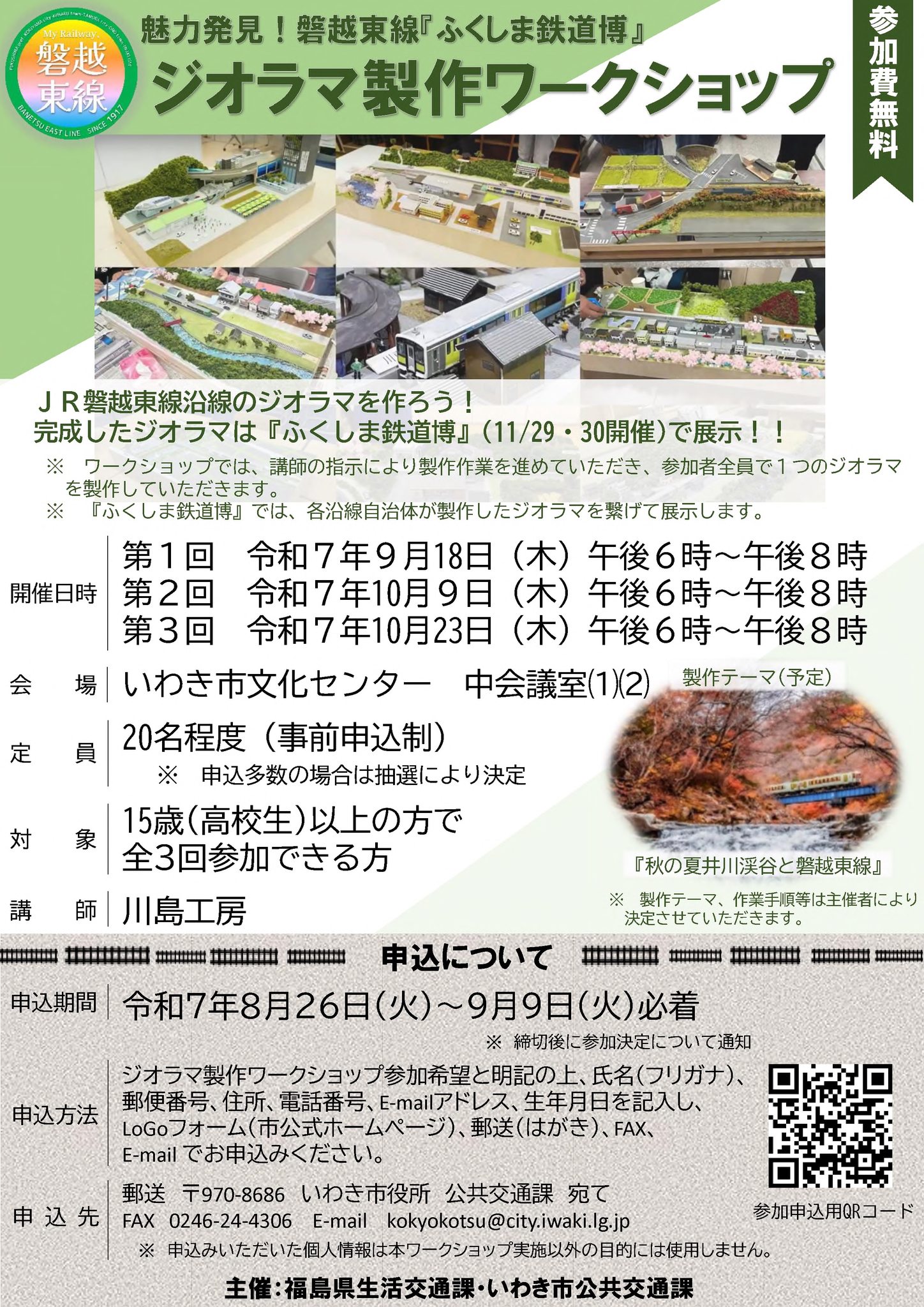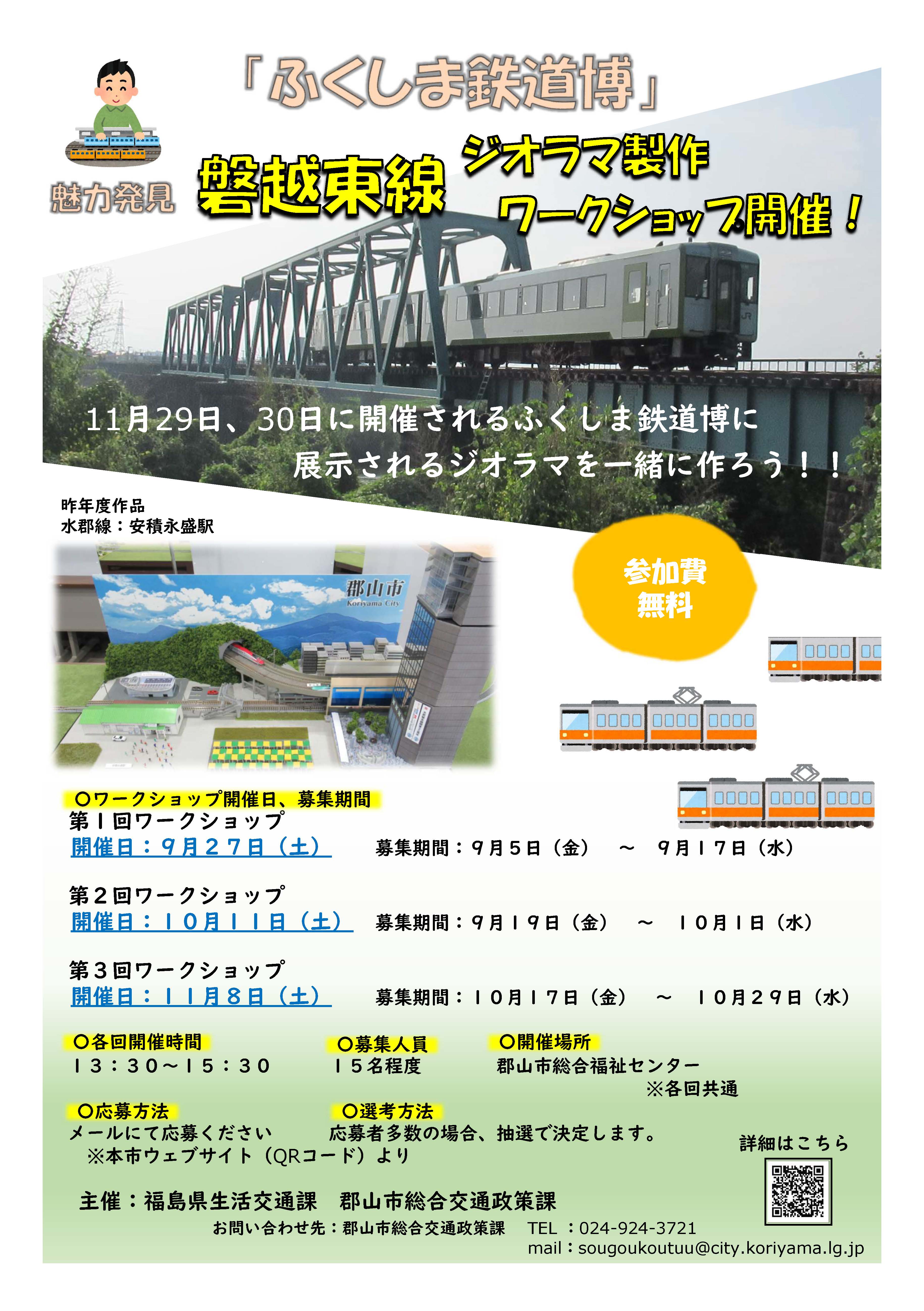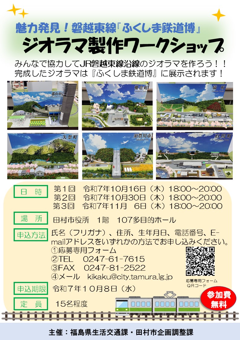 令和7年9月17日(水) 令和7年10月22日(水) 令和7年11月18日(火) | ふくしま鉄道博 ジオラマ製作ワークショップ (参加:田村高生) | 田村高校 | 福島県 三春町 |