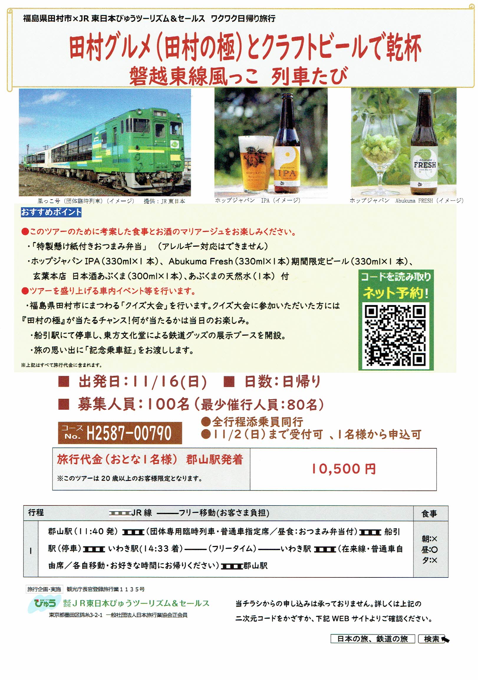 | 令和7年11月16日(日) | 同上 磐越東線風っこ 列車たび (催行確定・予約終了) | 郡山駅⇒いわき駅 (片道運行) | 田村市 |
