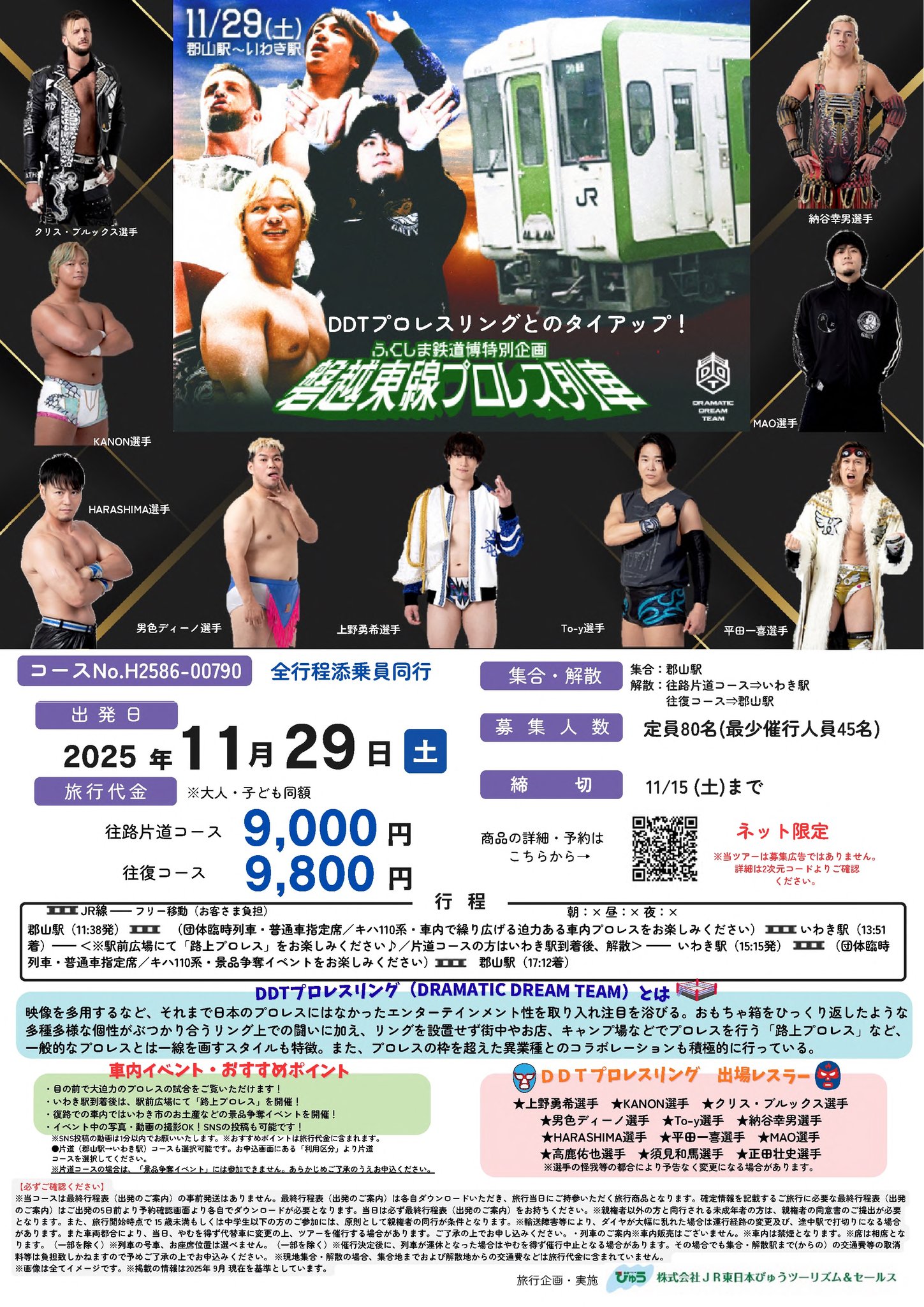令和7年11月29日(土) | ふくしま鉄道博特別企画 磐越東線プロレス列車(催行決定) | 郡山駅⇔いわき駅 | いわき市 ・ 磐越東線活性化対策協議会 |